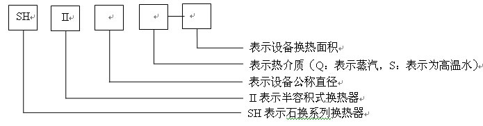 SHII型換熱器是熱交換器設備的新一代產品,這是將被加熱水貯存在殼體內,供熱介質蒸汽或高溫水則在多組銅盤管并聯(lián)運行。它是一種少貯存水量,隨時補充熱量,迅速換熱的高效節(jié)能設備。與其它換熱器相比,有如下優(yōu)點:體積小、易于搬運、立式安裝、占地面積小、浮動盤管自形擾動、高效換熱、自動除垢。 一、產品型號說明: