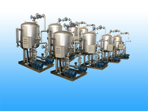 冷凝水是高質(zhì)量的水,而且它含有大量的熱量,所以在蒸汽供熱系統(tǒng)中回收冷凝水是節(jié)能水的重要措施之一。高溫水如果直接用泵抽送,泵前形成的負(fù)壓會使冷凝水汽化,造成氣蝕,嚴(yán)重時會由于氣體體積膨脹而發(fā)生爆裂,損壞水泵。所以傳統(tǒng)冷凝水回收發(fā)放是將其冷卻降溫后再用泵抽送。這樣就無法利用冷凝水所含有的大量熱能,而且由于冷凝水滲入了未經(jīng)處理的冷水,使水質(zhì)惡化,還要重新進(jìn)行處理。不但浪費了能源,還增加了入場用水量及水處理費用。冷凝水回收器設(shè)計了氣蝕消除措施,能確保水泵直接抽送高溫冷凝水而不發(fā)生氣蝕現(xiàn)象。冷凝水回收可廣泛用于化工、輕工、食品、紡織、橡膠、冶金、電力、機械等工業(yè)及餐飲、醫(yī)院、商場、旅館、辦公樓、民用建筑等所有使用蒸汽作為生產(chǎn)、采暖、空調(diào)、生活熱水等熱源的系統(tǒng)。